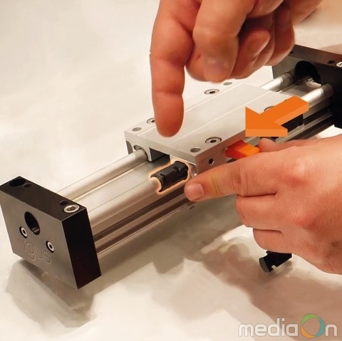 교체형 베어링의 원리는 간단하다. 우선 직동 하우징의 측면 커버를 스크류 드라이버로 분리한다. 함께 제공되는 툴을 사용하면 라이너를 하우징에서 쉽게 분리할 수 있으며, 레일에서 제거도 가능하다. 내마모성을 지닌 신규 라이닝은 레일위에 장착되며 마운팅 툴을 사용해 캐리지에 삽입된다. 직동 하우징 뒤에 측면 커버를 닫으면 베어링의 교체가 다 끝이 난다.