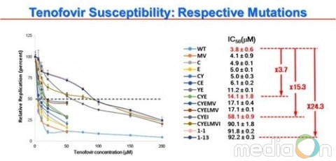 이 바이러스는 중합효소의 4군데에 돌연변이가 생김으로써 약에 대한 감수성을 15배 이상 감소시켜 약제 내성과 바이러스 돌파가 일어났다.
