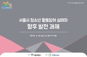 서울특별시는 서울특별시립청소년활동진흥센터의 주관으로 24일(수) 오후 2시 30분 서울특별시립청소년직업체험센터 하하허허홀에서 ‘2019년 청소년활동 정책 포럼’을 개최한다. 2019년 청소년활동 정책 포럼은 ‘2018청소년활동 참여 실태 및 요구조사’ 결과를 토대로 향후 청소년활동의 지향점과 정책 방향을 모색하기 위하여 마련되었다. 이번 포럼은 ‘2018 청소년활동 참여 실태 및 요구조사’를 연구한 김진호교수의 발제를 시작으로 좌장을 맡은 조남억관장과 토론자,청소년시설,정책수행기관,연구기관,청소년 2명이 참여하여 청소년활동 현장의 욕구에 부합하는 청소년활동이 이루어질 수 있도록 각계각층의 다양한 의견 제시와 논의가 이루어질 예정이다. 또한 이동현 서울특별시의회 의원의 참여기구 활동 경험을 토대로 ‘청소년기와 청소년활동의 소중함’을 주제로 한 기조강연으로 청소년활동의 의미가 더욱 강조될 것으로 기대된다. 2019년 청소년활동 정책 포럼은 사전 참가 접수를 통해 참여할 수 있으며, 참가 신청은 서울특별시립청소년활동진흥센터를 통해 신청할 수 있다. 한편 2018 청소년활동 참여 실태 및 요구조사는 서울특별시 거주 청소년 1238명을 대상으로